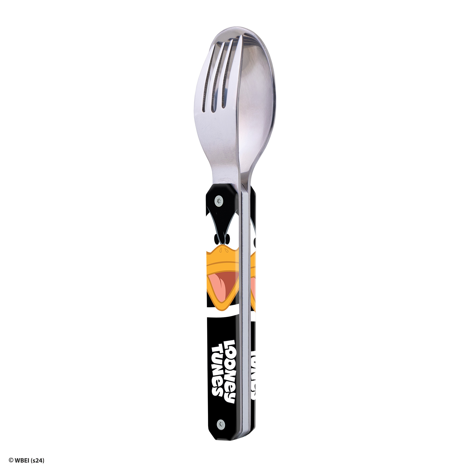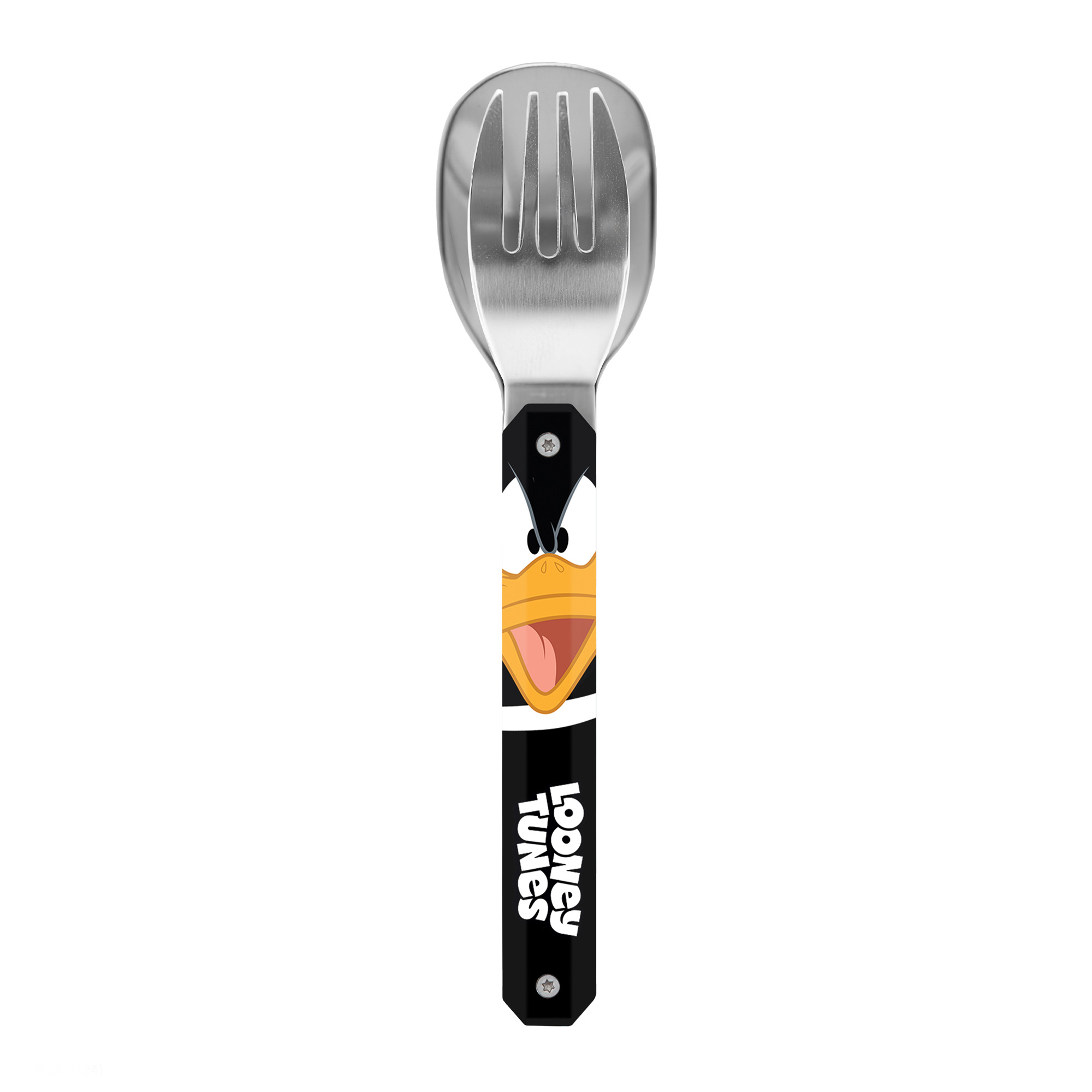 Dětská lžíce a vidlička v příborovém setu z kolekce Looney Tunes. Dodáváno s pevným PP pouzdrem. Lze mýt v myčce na nádobí.