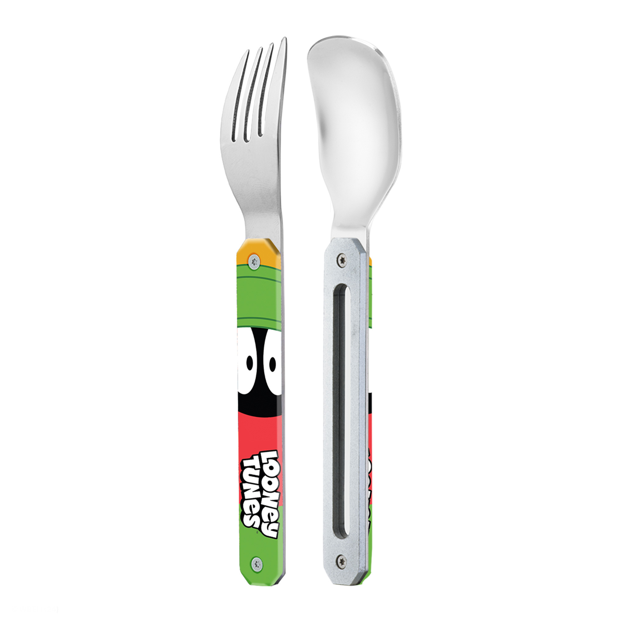 Dětská lžíce a vidlička v příborovém setu z kolekce Looney Tunes. Dodáváno s pevným PP pouzdrem. Lze mýt v myčce na nádobí.