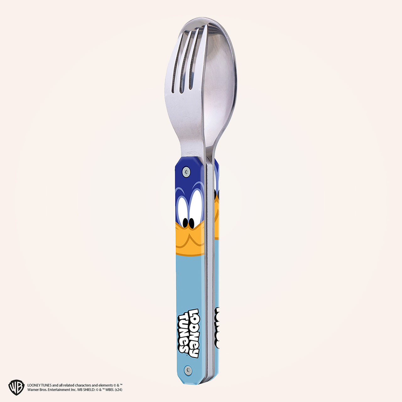 Dětská lžíce a vidlička v příborovém setu z kolekce Looney Tunes. Dodáváno s pevným PP pouzdrem. Lze mýt v myčce na nádobí.