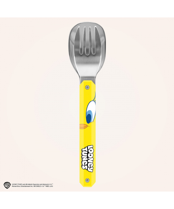Dětská lžíce a vidlička v příborovém setu z kolekce Looney Tunes. Dodáváno s pevným PP pouzdrem. Lze mýt v myčce na nádobí.