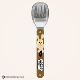 Dětská lžíce a vidlička v příborovém setu z kolekce Looney Tunes. Dodáváno s pevným PP pouzdrem. Lze mýt v myčce na nádobí.