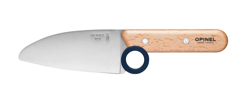Dětský kuchařský set je praktickou pomůckou, jak naučit malé kuchařské pomocníky správným a bezpečným návykům při používání nožů a škrabek. Nůž i škrabka jsou vybaveny ergonomickým červeným kroužkem, který pomáhá naučit správným způsobům držení a umístění prstů a zvyšuje bezpečnost při jejich používání. Zaoblená špička nože pro vyšší bezpečnost. Čepel nože je však ostrá jako běžné nože Opinel, proto opravdu malé pomocníky nenechávejte bez dozoru.