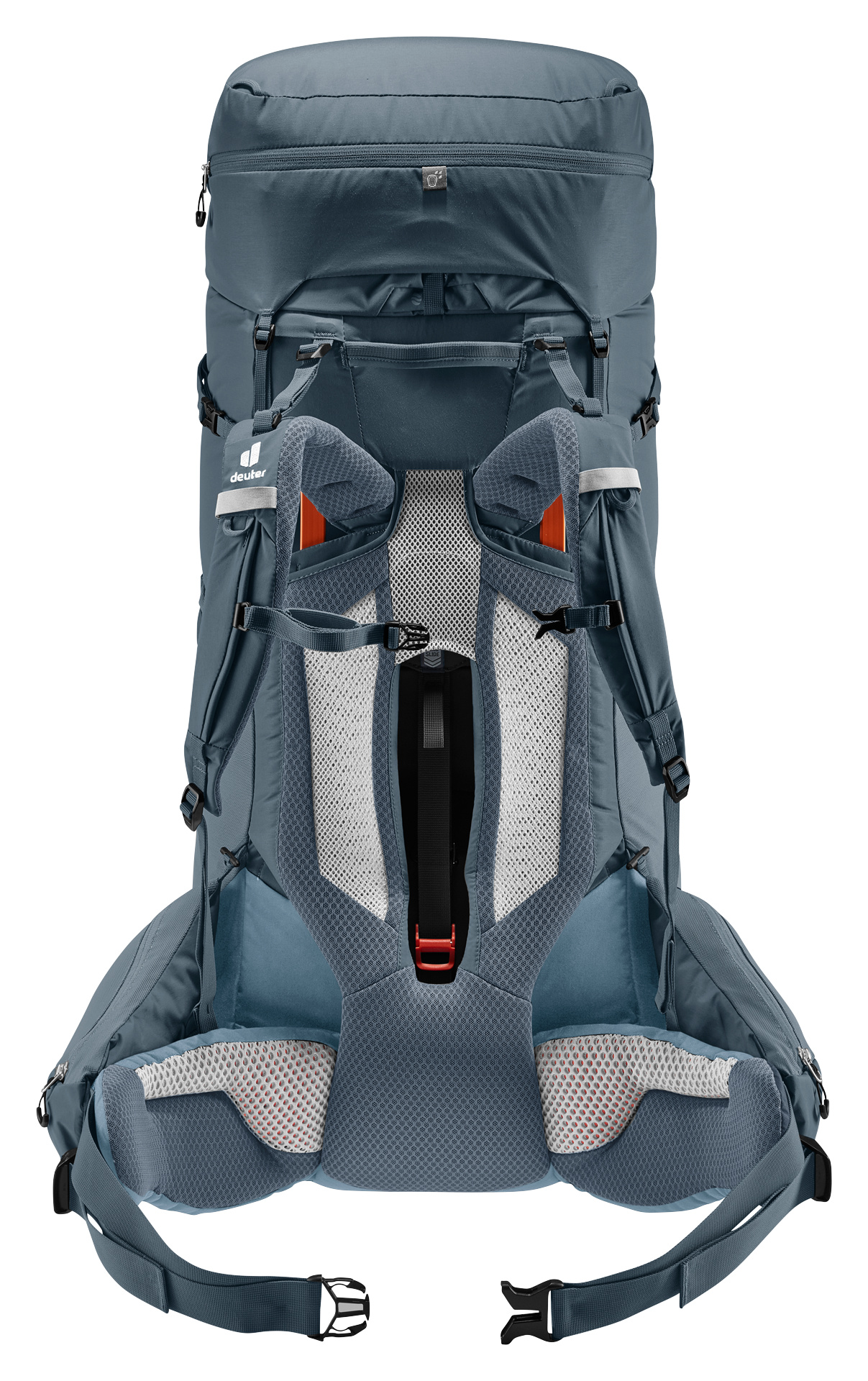 Jádrem batohu je zádový systém Aircontact s novou síťovinou Air Spacer, která zajišťuje výbornou ventilaci. Velký ventilační kanál mezi polštáři pomáhá odvést teplo a snižuje pocení až o 15 % oproti klasickým zádovým panelům. Nastavitelná délka zad VariSlide, ergonomické ramenní popruhy ActiveFit a bederní pás VariFlex ECL společně přenášejí zatížení blízko těžiště a zajišťují stabilitu při chůzi i v nerovném terénu.