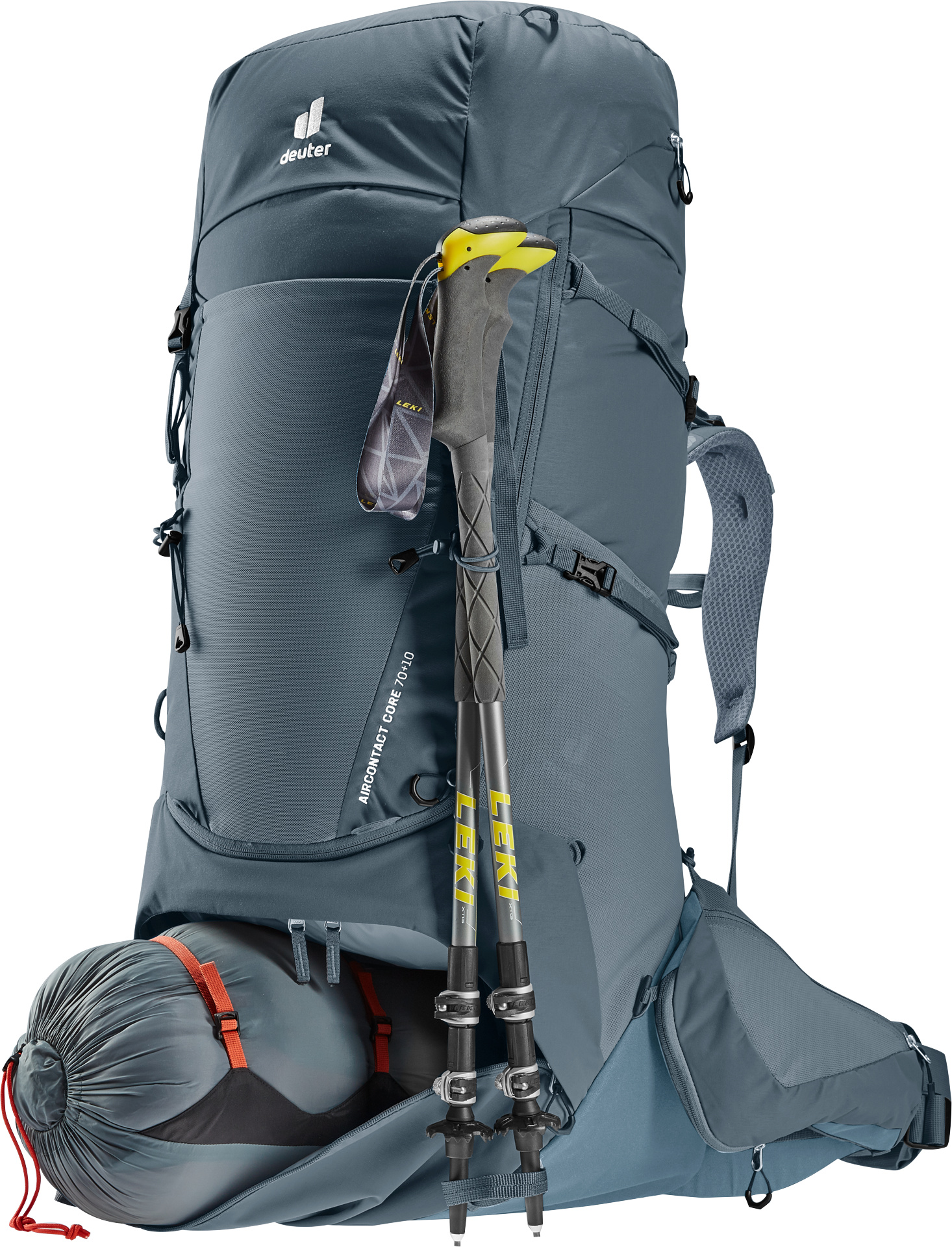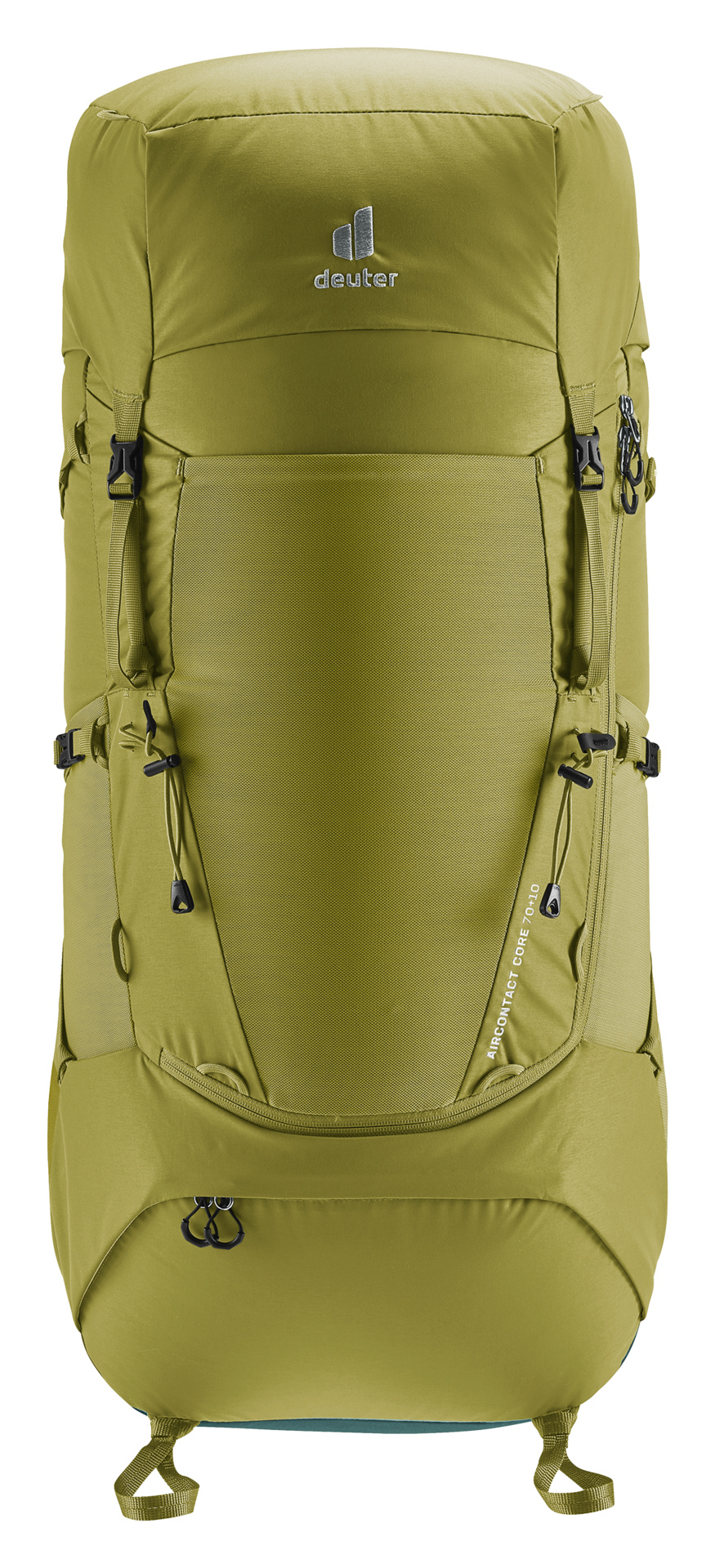 Deuter Aircontact Core 70+10 je velkoobjemový trekingový batoh určený pro cestování, přechody hor i delší putování světem. Díky základní kapacitě 70 litrů a rozšiřitelnému víku o dalších 10 litrů snadno pojme vybavení na několikatýdenní dobrodružství. Pečlivě zvolená konstrukce umožňuje pohodlně nést i těžší náklad, aniž by batoh ztrácel stabilitu.
