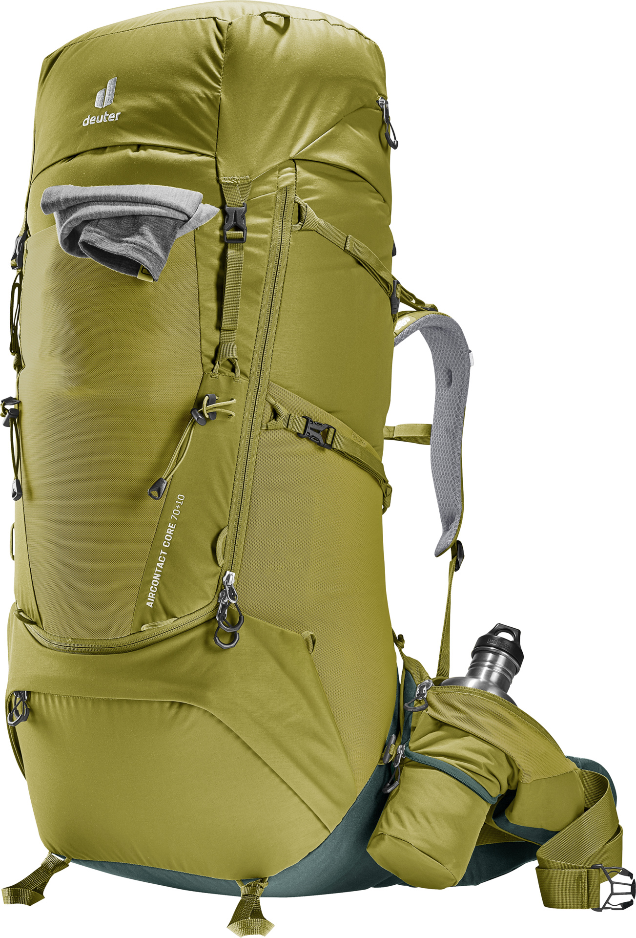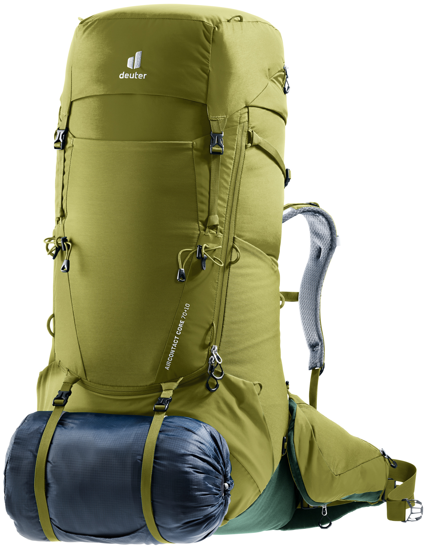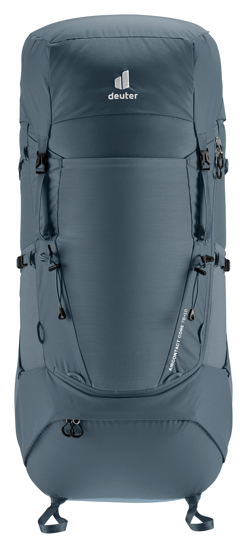 Rám ve tvaru Y pomáhá rozložit hmotnost a zvýšit přesnost pohybu s plným nákladem. Batoh je vyroben z odolných a recyklovaných tkanin (500D PA Textured a 235D REC PA Plain) s dlouhou životností. Součástí je také odnímatelná pláštěnka, takže se nezalekne ani špatného počasí. Díky doporučenému zatížení 15–20 kg je Aircontact Core 70+10 vhodný pro treky s výbavou na více dní i pro dálkové cestování.