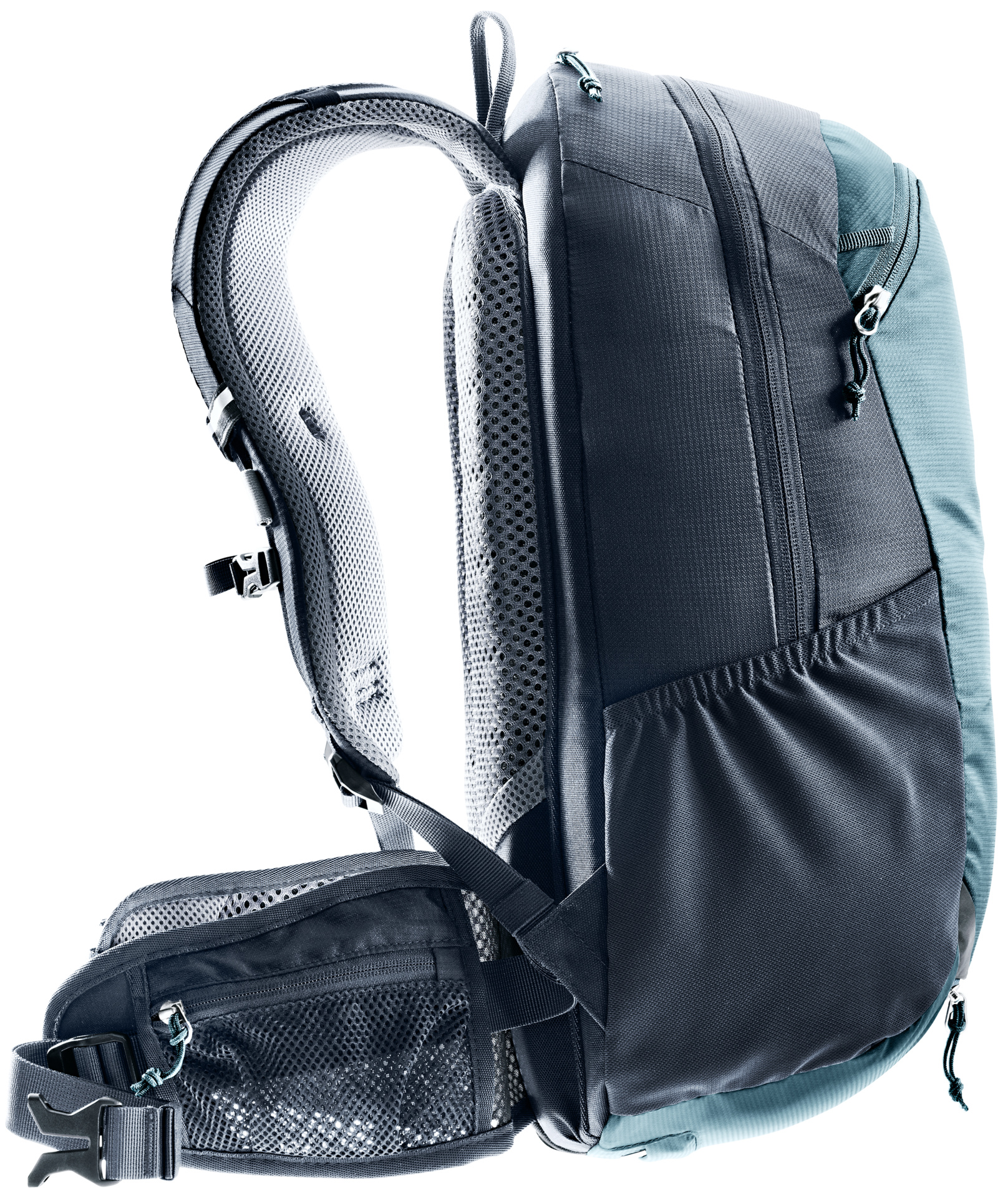 Díky recyklovaným materiálům, systému bez PFAS a certifikaci bluesign® je batoh i ekologicky odpovědným výběrem. Doporučuji batoh kombinovat s cyklistickou výbavou – např. hydrovak, nářadí, přední světlo s gumou na poutku reflexní smyčky. Pro maximální pohodlí při celodenních výletech v terénu doporučuji doplnit lehkou větrovkou nebo náhradním oblečením v boční kapsě.