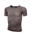 Duras Janička dětské triko merino krátký rukáv hnědá/růžový šev