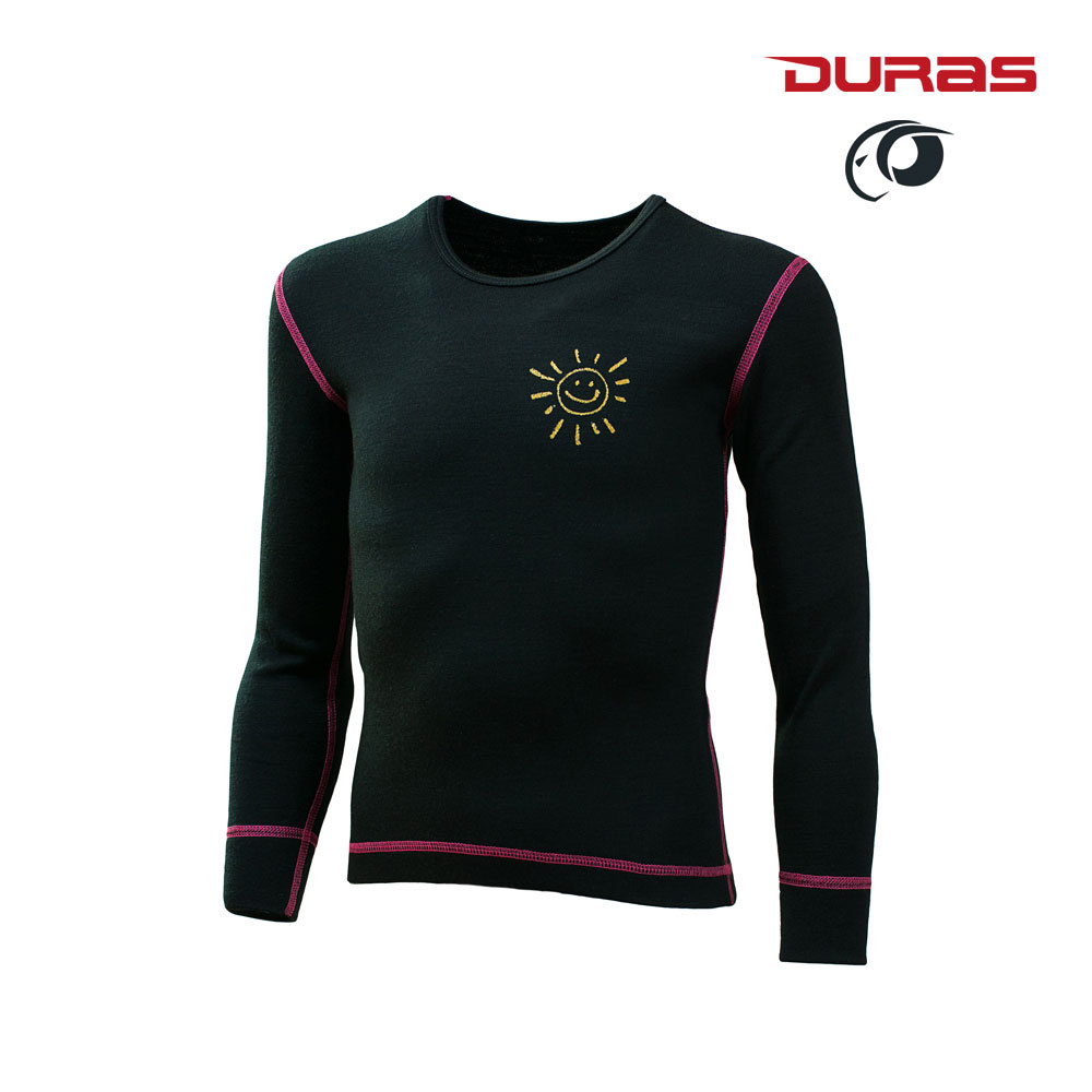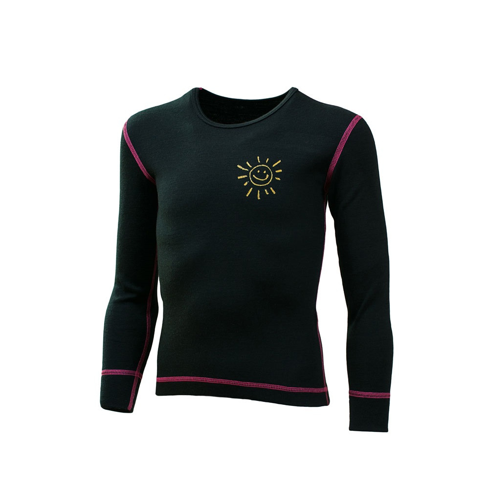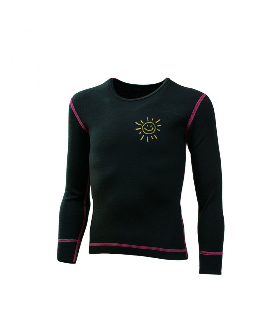 Duras Natálka dětské triko merino dlouhý rukáv sluníčko/černá+růžový šev