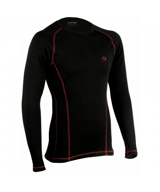 Duras Patrik pánské triko merino dlouhý rukáv černá+rudý šev Velikost S