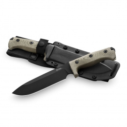 Dýka pro dobrodruhy v provedení s černou čepelí, rukojetí v zelené corduře a pevným kydexovým pouzdrem.