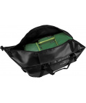 inovativní kolekce voděodolných zavazadel Migrate vyrobená s použitím recyklovaných plastů díky své odolnosti a modernímu pojetí jsou zavazadla vhodná na krátkou dovolenou i náročnější cesty zavazadlo můžete vozit na kolečkách jako cestovní tašku, nosit v ruce nebo na zádech díky dvěma ramenním popruhům vyrobeno z velmi odolného materiálu 900D TPU, který se díky hladkému povrchu snadno čistí vnější voduodpuzující povlak z recyklovaného materiálu získaného z ochranných fólií čelních skel automobilů poskytuje dodatečnou odolnost a prodlužuje životnost hlavní oddělení je prostorné a uzavíratelné pomocí robustního obousměrného uzamykatelného 10" zipu (zámek není součástí balení) reflexní taháčky zipů umožňují díky své velikosti otevírání a zavírání i v rukavicích vnitřní krycí léga po celé délce zipu zabraňuje pronikání prachu a vlhkosti konstrukce dna zamezuje vniknutí vody do prostor zavazadla dvě odolná kolečka zasazená do zpevněného dna pro hladký pojezd jedno madlo na vrchní straně pro snadné převážení po kolečkách jeden vrchní a dva boční kompresní popruhy s plastovou přezkou pro maximální kompresi a skladnost dvě rukojeti pro přenášení v ruce, které lze spojit pomocí suchého zipu rukojeti a madla jsou spojena do jednoho celku pro zajištění maximální pevnosti menší boční kapsa na zip pro uložení drobných cestovních doplňků dva vyztužené ramenní popruhy jsou ukryté ve vnějších kapsách, pokud nejsou používané popruhy jsou nastavitelné a jejich součástí je malé poutko pro upevnění dodatečného vybavení, jako jsou brýle apod. zavazadlo lze složit do plochého tvaru pro lepší skladnost použité materiály odpovídají standardu BluVíce