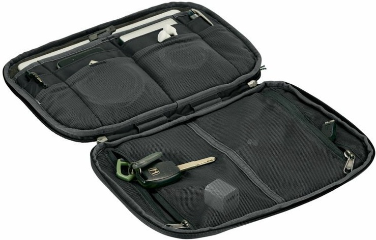 pouzdro s 5" zipem pro uložení a organizaci příslušenství k tabletům, telefonům a dalším zařízením s polstrovaným zadním panelem elegantní design se dvěma smyčkami na zadní straně pro možnost upevnění a zabezpečení přihrádka zabezpečená poutkem s měkkou fleeceovou vrstvou pro uložení tabletu dvě síťované kapsy na zip na nabíječky, powerbanky, externí disky a další větší příslušenství jedna z kapes je vybavená karabinou pro upevnění klíčů nebo peněženky čtyři volně přístupné přihrádky a čtyři elastické síťované kapsy na kabely, sluchátka a další drobnosti držák na pero vnější poutko pro přenášení vyrobeno ze 100% recyklovaného polyesterového mikrovlákna v kombinaci s pevnou síťovinou, který je snadno omyvatelný výrobek odpovídá standardu bluesign® pro bezpečnost a ochranu zdraví a životního prostředí při výrobě textilií a zaručuje kombinaci nízké ekologické zátěže a vysoké funkčnosti, kvality, moderního designu a komfortu obal je součástí balícího systému Pack-It Reveal™ navrženého pro chytré cestovatele a skvělou organizaci věcí v zavazadle nebo batohuVíce
