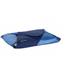 větší pevný modrošedý cestovní obal 400g na suchý zip z recyklovaného polyesterového mikrovlákna s prodyšnou síťovinou pro lepší přehlednost určený pro složení a přenášení až dvanácti kusů oblečeníVíce