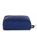 modrošedý cestovní obal na obuv 100g z recyklovaného polyesterového mikrovlákna se dvěma vnitřmí přepážkami určený až pro oddělení tří párů obuvi od ostatních věcíVíce