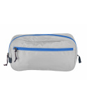 minimalistická šedomodrá toaletní taška 4.5l z ultralehkého voděodolného polyesteru ripstop se třemi kapsami na zip, bočními poutky pro přenášení a antimikrobiální úpravou Protx2®Více