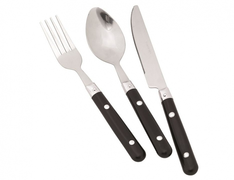 -sada nerezových příborů pro čtyři osoby ideální pro rodinné kempování -obsahuje čtyři lžíce, čtyři vidličky a čtyři jídelní nože -rukojeti z plastu -elastická poutka udrží příbory na místě -díky rolovacímu úložnému obalu se snadno zabalí a převáží -poutko pro přenášení