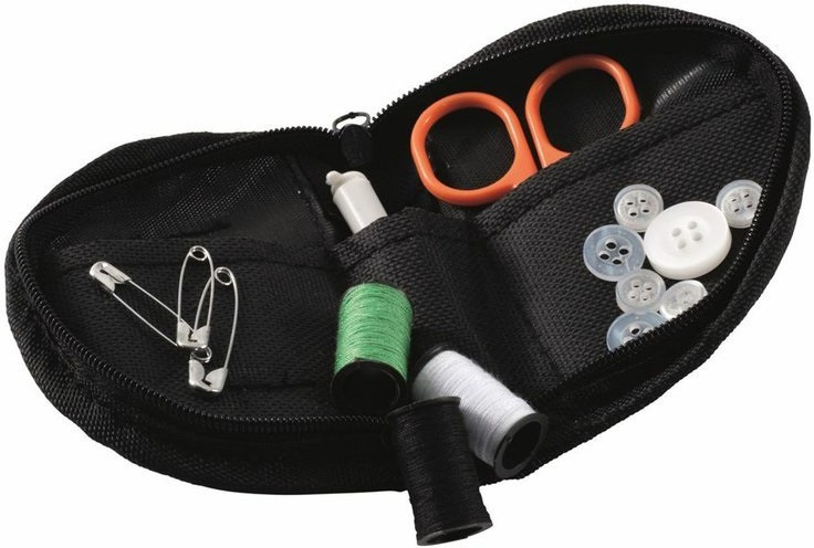 praktická šicí souprava vhodná pro drobné, nenáročné úpravy oděvů během cestování velmi malá kapesní velikost a nízký profil pro lepší skladnost nylonové pouzdro na zip díky svým malým rozměrům se vejde do kabelky či cestovní tašky sada obsahuje: 4x malý knoflík 2x střední knoflík 1x velký knoflík sada 9 jehel v plastové tubě 3x spínací špendlík 1x nůžky 3x nitě (černá / zelená / bílá)