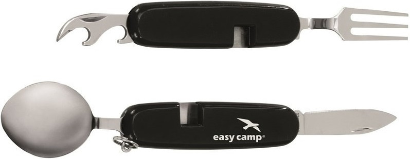 jednoduchý skládací příbor, který lze rozdělit na dvě části lžíce, vidlička, kapesní nůž otvírák na lahve a na konzervy kroužek pro zavěšení baleno v blistruVíce