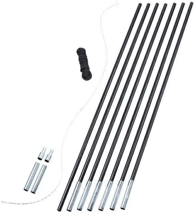 sada sedmi stanových tyčí odélce 60 cm stanové lanko ukončovací součásti protahovací drát