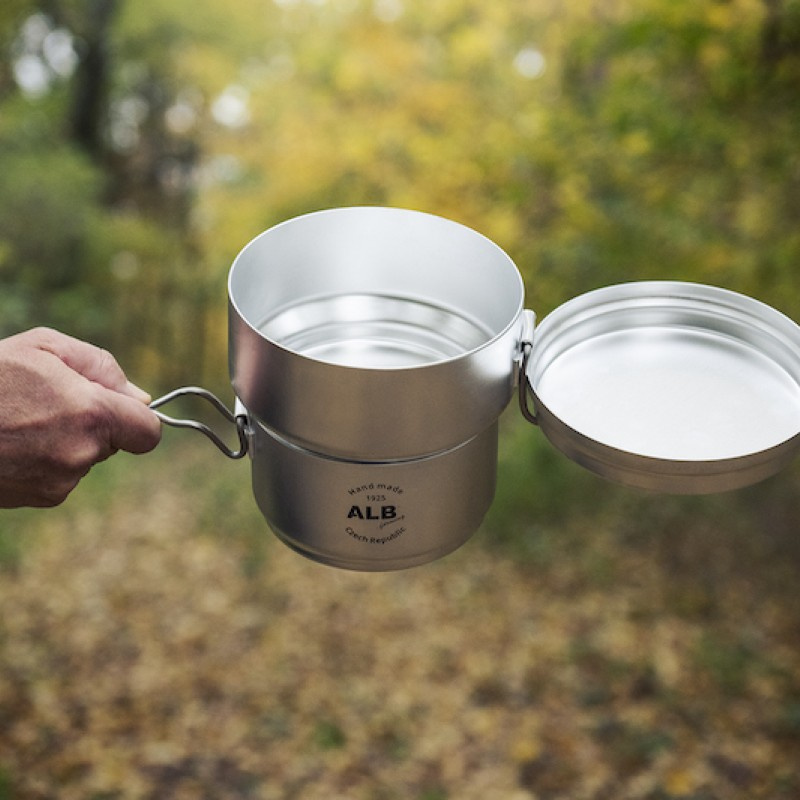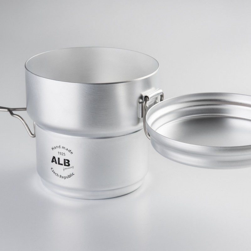 Hliníková varianta klasického „armádního“ ešusu s menší miskou. Nádobí se skládá ze tří dílů (velká miska, malá miska, víčko) a je vyrobeno z potravinářského hliníku, takže je zdravotně zcela nezávadné. Povrch je mořený.