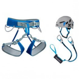Set vybavení potřebného k zajištění na ferratě. Set obsahuje lezecký sedák Rock Empire Streak, přilbu Galeos Evo a ferratovou brzdu DynaGo.