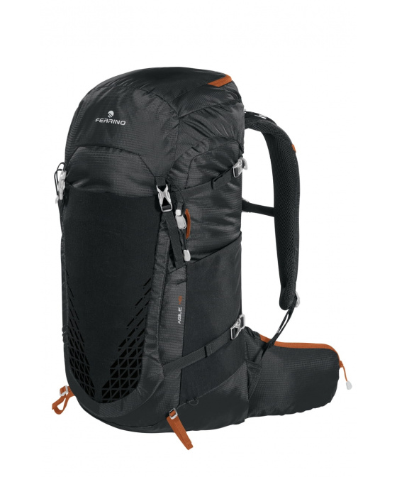Pokud jsi minimalista, který na svých cestách, výletech a dovolených počítá každý gram, který nese na zádech, tak je řada ultralehkých batohů Ferrino Agile určena přímo pro Tebe! Díky zádovému systému H.B.S., polstrovaným ramenním popruhům a širokému bedernímu pásu batoh pevně drží na svém místě a je velmi pohodlný. Velký důraz byl kladen na odvětrání celého zádového systému. O správnou cirkulaci vzduchu se starají laserem prořezávané větrací kanálky, které jsou i na ramenních popruzích a bederním pásu. Díky těmto kanálkům může vzduch bez problému proudit i pod zatíženým batohem. Tělo batohu tvoří lehký a odolný materiál, který je ze 100% recyklovaný, což zase potěší Tvou duši milovníka přírody. Do hlavní velké komory, která ma horní vstup se stahováním a horním víkem, se vejde vše, co potřebuješ na svých cestách. Boční a přední elastická kapsa bez problému pojme láhve s pitím nebo třeba odloženou bundu, kvůli které nemusíš otevírat celý batoh. Na bederáku najdeš kapsičku na zip, do které strčíš třeba energetickou tyčku nebo telefon a máš je hned po ruce. Samozřejmostí je dostatek poutek a oček, pomocí kterých upneš na batoh třeba cepín, turistické hole nebo lezeckou helmu. Zkrátka Agile je plnohodnotný turistický ultralehký batoh, který Tě nenechá ve štychu. Vyber si ze spousty možných litráží a barev a vyraz za dobrodružstvím!Více