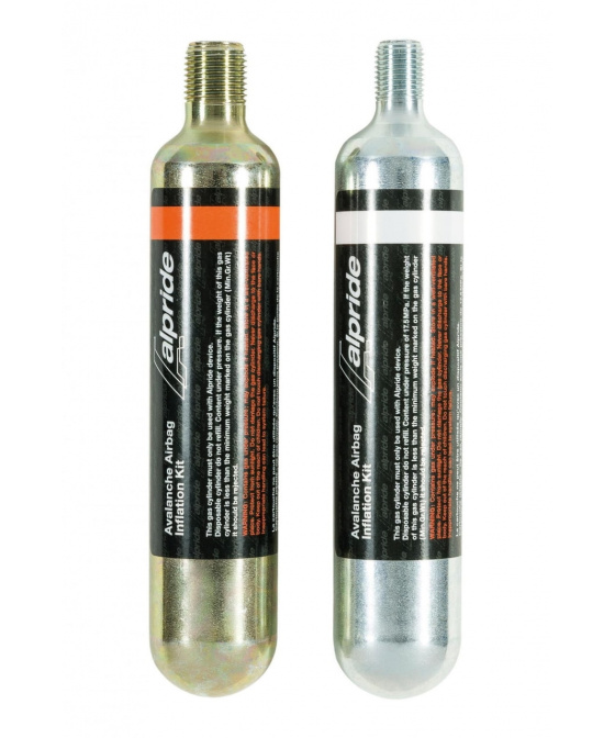 Sada náhradních kartuší pro lavinové batohy se systémem Alpride 1.0 a 2.0 Praktická sada obsahuje jednu bombičku s plynem argon a jednu bombičku s CO₂, které společně zajistí rychlé, spolehlivé a bezpečné nafouknutí lavinového airbagu. Kartuše jsou určeny na jednorázové použití a jsou plně kompatibilní se všemi batohy vybavenými airbag systémem Alpride 1.0 a 2.0 bez ohledu na výrobce batohu.Více