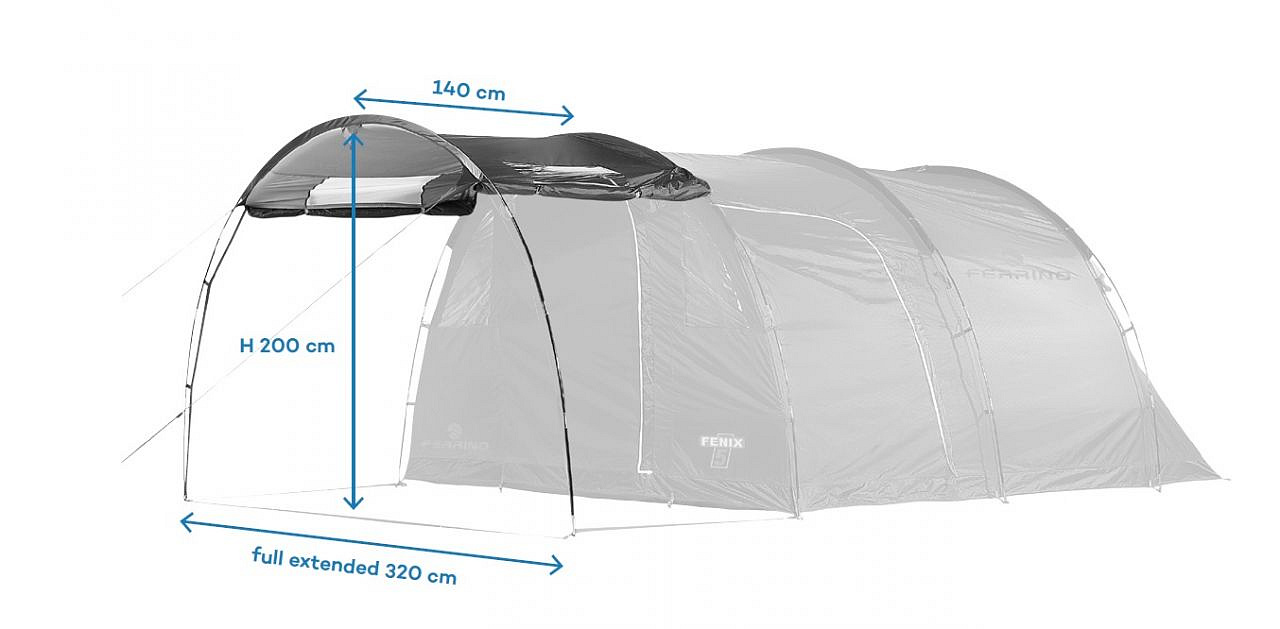 - Přídavná veranda pro rozšíření obytného prostoru u stanu