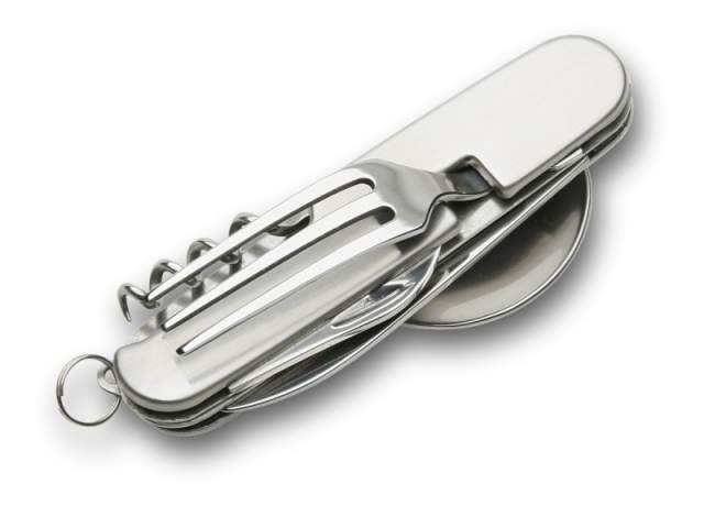 Multifunkční nůž/příbor z nerezové oceli obsahují: