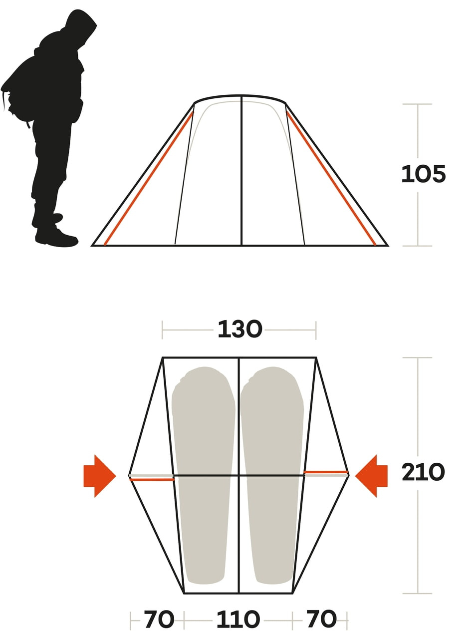 Recyklovaný polyester je praktický pro časté používání a balení při turistice. Materiál je zvolený tak, aby byl odolný a dobře použitelný v terénu. Je to funkční volba pro lehký jednoplášťový stan.