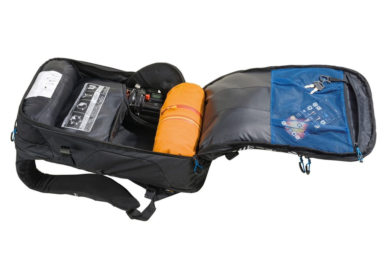 Jedná se o nejnovější generaci lavinového airbagu od firmy Alpride. Funguje na principu elektrického kompresoru a suprakondenzátorů místo klasických kartuší se stlačeným plynem. Nová generace E2 je lehčí a kompaktnější než předchůdce E1. Kompresor během 3 vteřin nafoukne 162 litrový airbag, který tě udrží nad lavinou a výrazně tím snižuje riziko úplného zasypání lavinou.