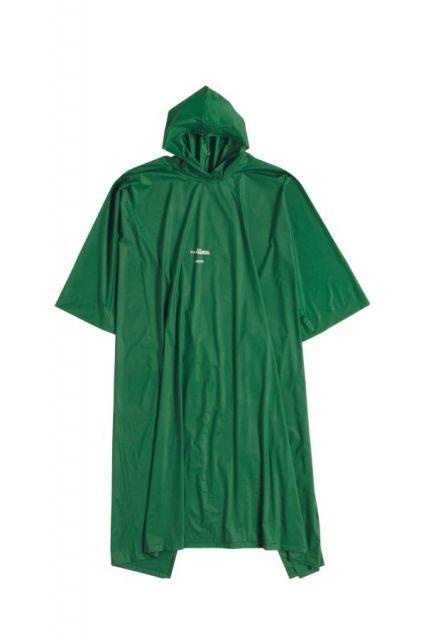 Pončo s kapucou z pevného PVC (120 gr/m2). Druky na stranách usnadňují zapínání. Přelepené švy. Vhodné do 150 cm výšky postavy. Barvy červená / zelená.