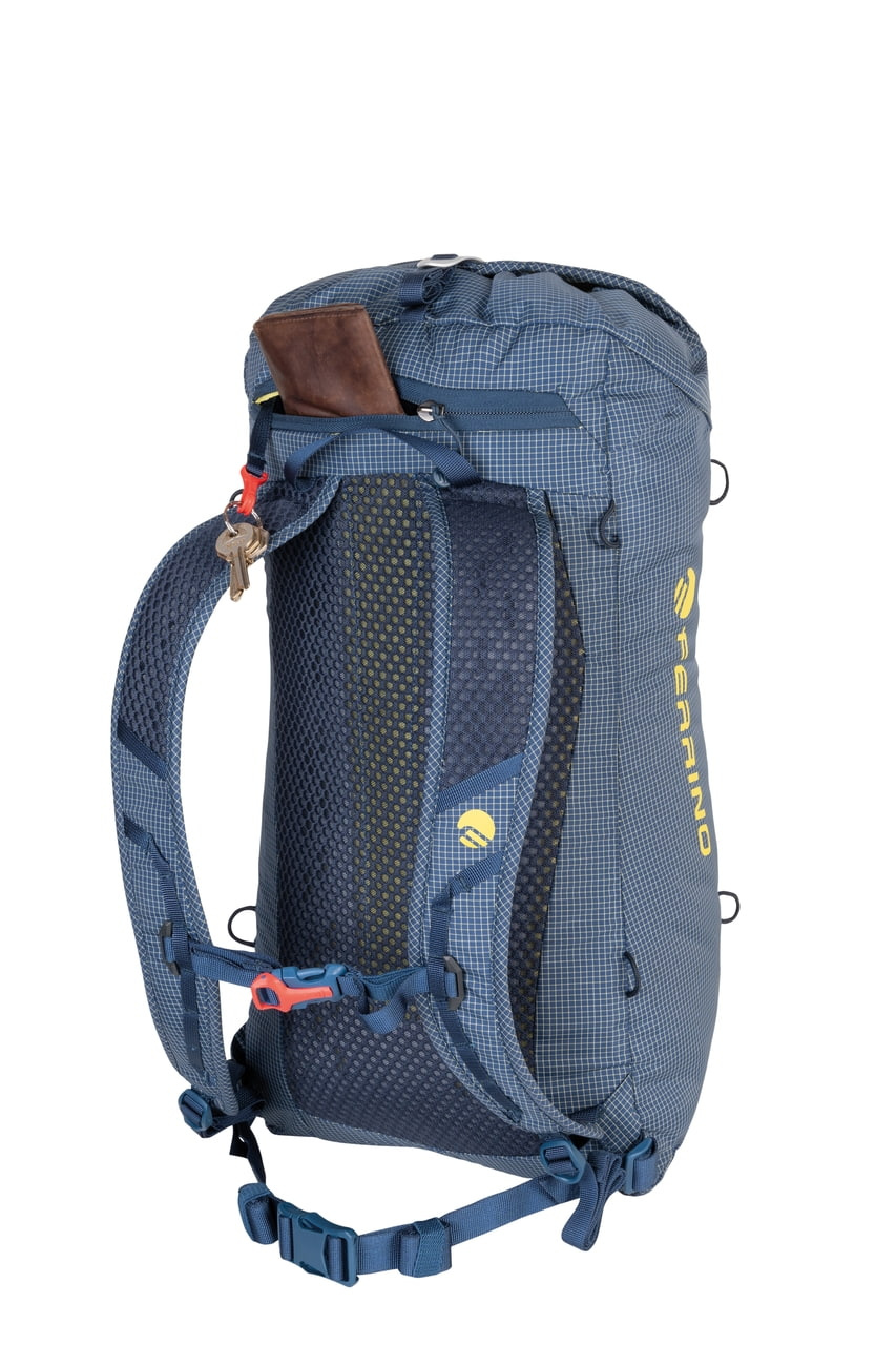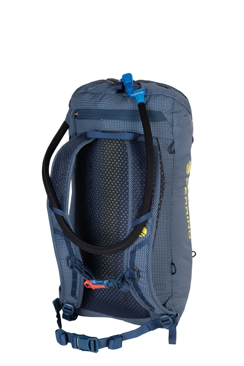 Inovativní zádový systém, který zajišťuje dokonalé přilnutí batohu k tělu a efektivní odvětrávání zad. Díky lehkému polstrování a strategickým perforacím je zajištěn komfort i při dlouhém nošení, zatímco síťovinová vrstva chrání oděv a umožňuje volné odpařování vlhkosti. Tento systém kombinuje stabilitu, lehkost a prodyšnost pro náročné horské výpravy.