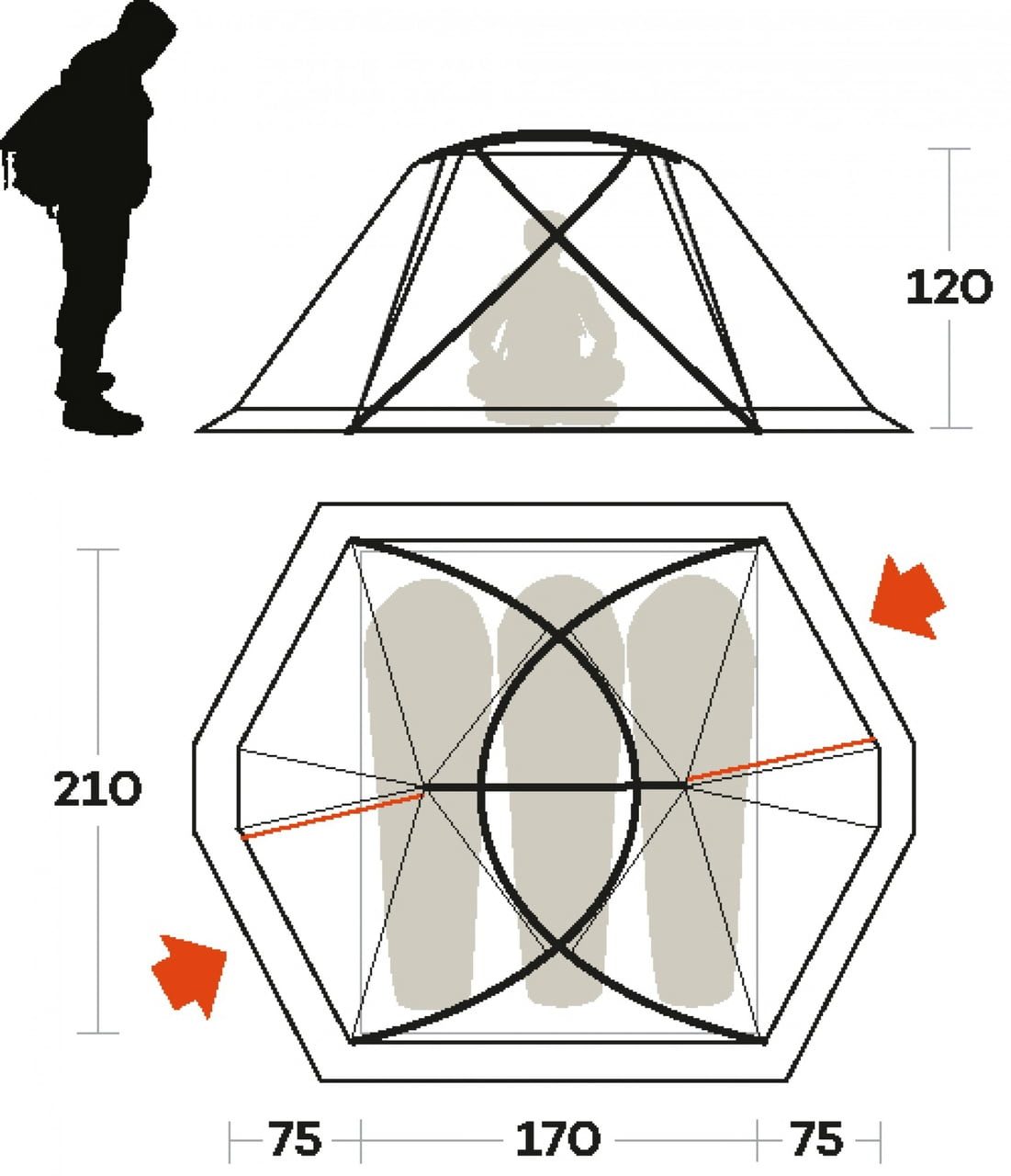 - Vnitřní stan: 70D Polyestr Ripstop 55 g/m s Mesh síťovinou