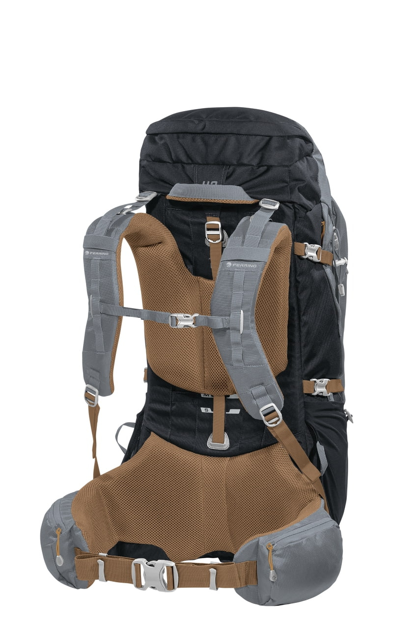 Zádový systém: D. E. A. (Double Ergo Adjustment) s bohatým polstrováním přináší komfort po celou dobu nošení i při plném zatížení. Výškově polohovatelná ramenní část se přizpůsobí na různé výšky postav. Kovová výztuha pomáhá rozkládat váhu rovnoměrně mezi ramenní a bederní část.