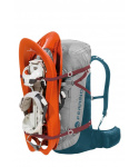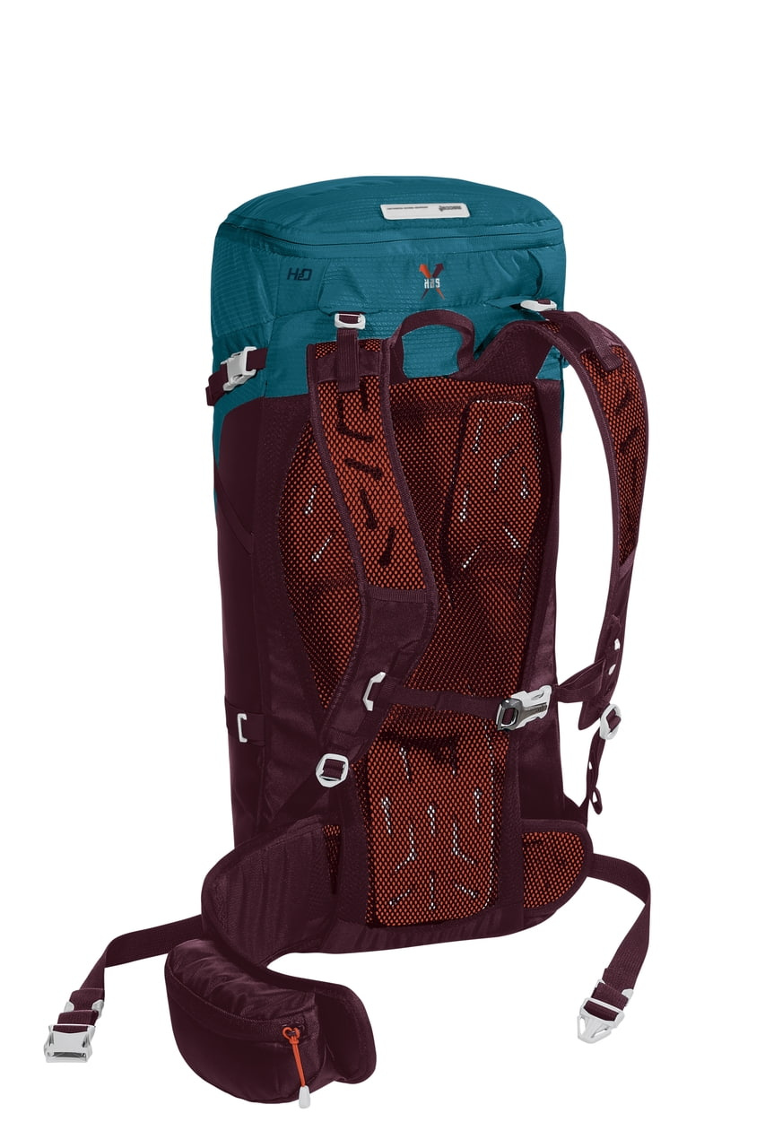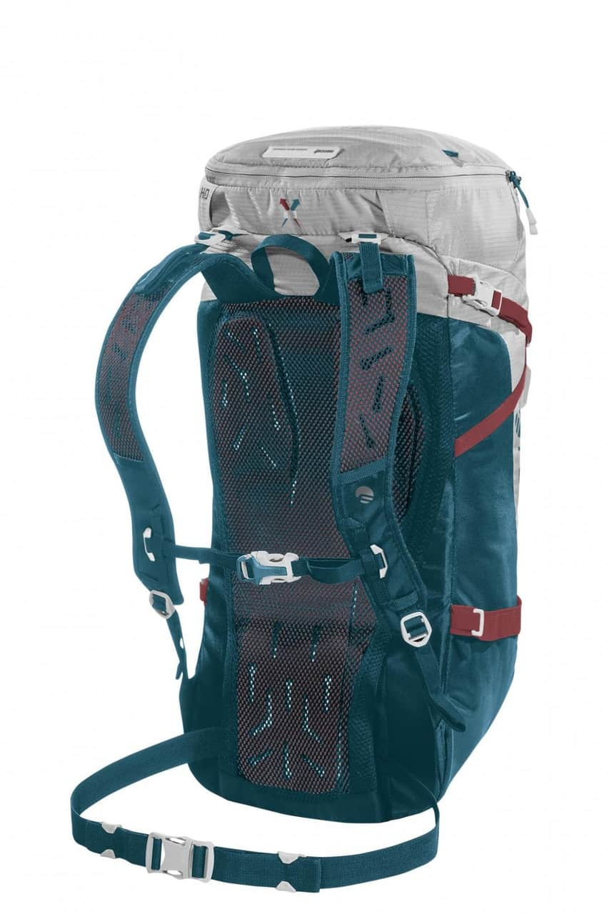 Inovativní zádový systém, který zajišťuje dokonalé přilnutí batohu k tělu a efektivní odvětrávání zad. Díky lehkému polstrování a strategickým perforacím je zajištěn komfort i při dlouhém nošení, zatímco síťovinová vrstva chrání oděv a umožňuje volné odpařování vlhkosti. Tento systém kombinuje stabilitu, lehkost a prodyšnost pro náročné horské výpravy.