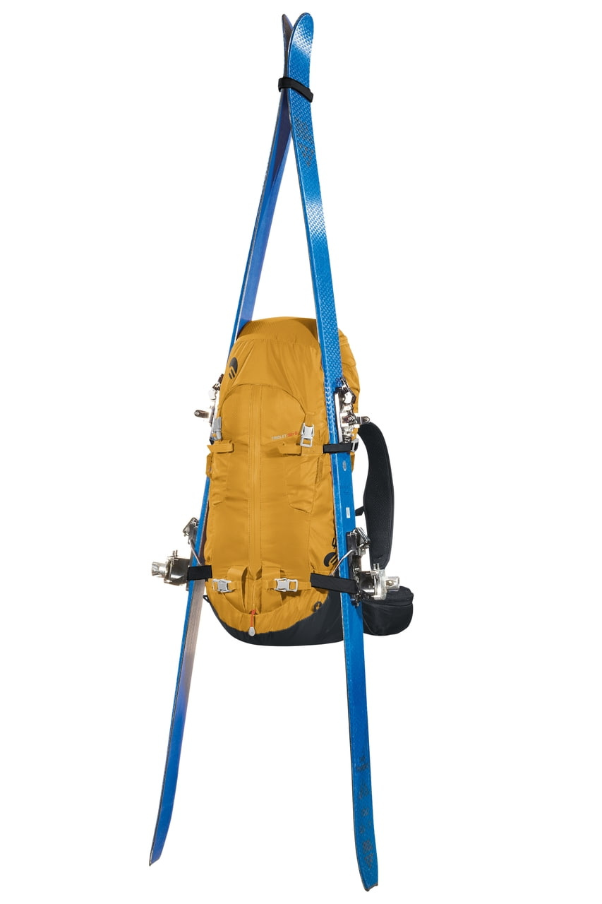 Vysoce odolné tělo batohu tvoří kombinace materiálů Polyester Diamond Dobby 300D a Polyester Twill 500×400D. Zádový systém „Hollow Back System“ nabízí výbornou ventilaci zad, odnímatelný bederní pás, horní víko a zadní panel — to umožňuje snížit hmotnost či upravit objem batohu podle potřeby. Batoh je vybaven množstvím technických prvků: držáky na cepíny a hole, lyže/sněžnice (skialp), velký přední vstup („front access“) pro snadné rozbalení vybavení i při připnutých lyžích.