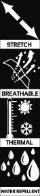 - Warmstretch Heavy (60 % polyamid, 29 % polyester, 11 % elastan), 260 g/m²