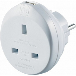Popis Go Travel adaptér UK/Evropa s USB typ E/F