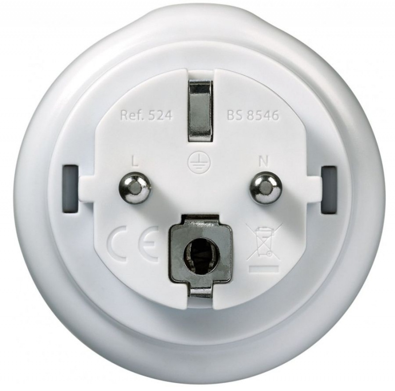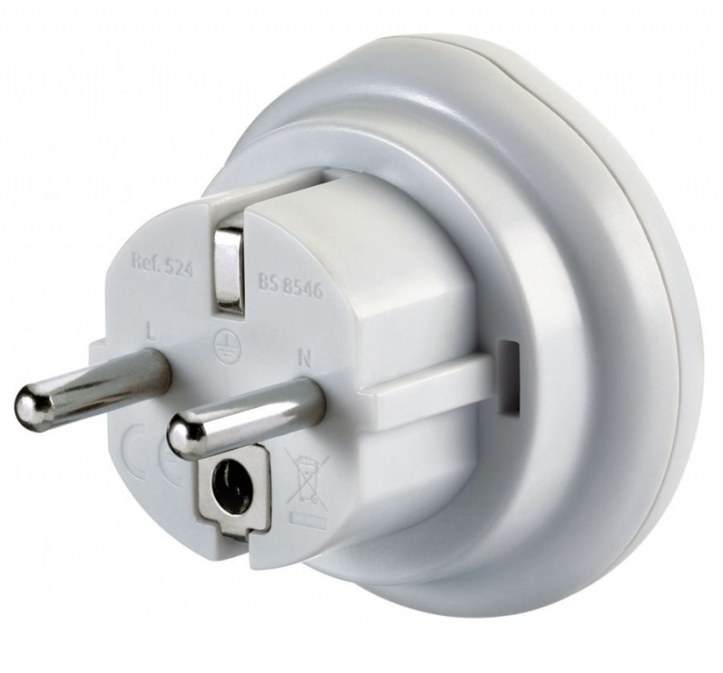 -přeměňuje britské 3pólové uzemněné zástrčky, aby odpovídaly většině 3pólových evropských zásuvek