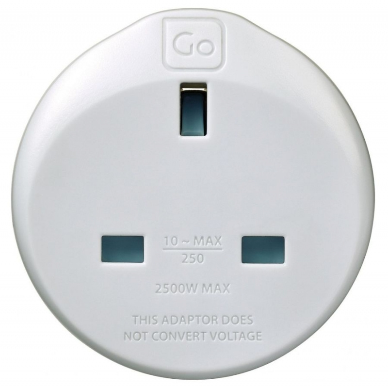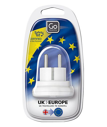 -uzemněný adaptér pro cestující z Velké Británie do Evropy