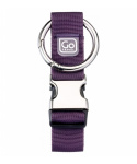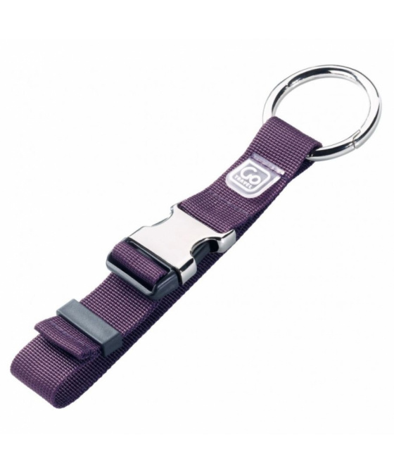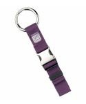 pohodlný univerzální fialový držák pro upevnění nejrůznějších doplňků k popruhům tašek nebo kabelek pomocí silné kulaté kovové karabiny a přezkyVíce