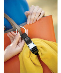 pohodlný univerzální držák pro upevnění nejrůznějších doplňků k popruhům tašek nebo kabelek ideální pro upevnění lehkých bund, svetrů, deštníků nebo nákupů, aby ruce zůstaly volné pro příjemnější pocit z cestování silná kulatá kovová spona s pružinovým uzavíráním se hodí na většinu zavazadel snadné, rychlé a bezpečné připevnění během několika sekund snadno rozepínatelná přezka pro upevnění doplňků