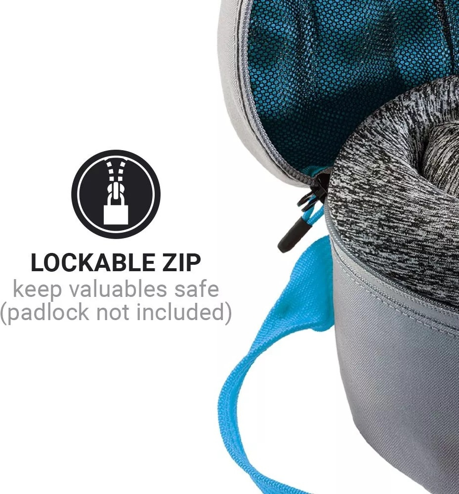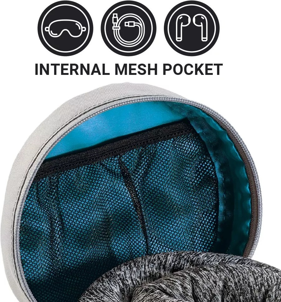 nafukovací cestovní podhlavník s patentovaným tvarem pohodlně se vejde kolem hlavy a snižuje námahu krku při dlouhých cestách plochá zadní část zabrání sklouzávání hlavy do strany úložný vak se stahovací šňůrkou udržuje podhlavník v čistotě