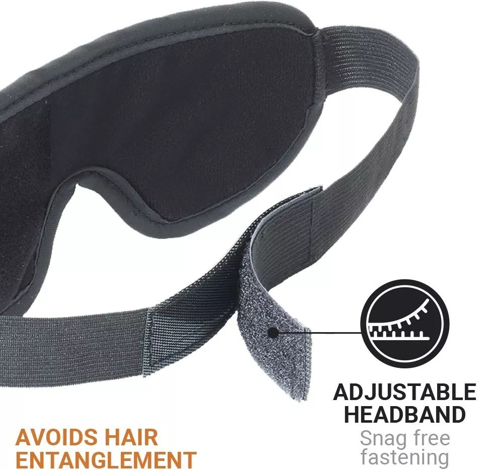 super pohodlná oční maska s ucpávkami do uší blokující nežádoucí světlo během spánku jedinečně vyklenutý tvar ponechává prostor kolem očního okolí a nabízí minimální kontakt očí s vnitřkem masky tvar je šetrný k řasám a zabraňuje rozmazání očního make-upu nastavitelný elastický popruh na suchý zip udržuje masku bezpečně na místě elegantní design a měkký elastický materiál v kombinaci polyesteru a elastanu součástí balení je sada dvou měkkých pěnových ušních ucpávek úložné hygienické pouzdro se stahovací šňůrkou unisex provedení oční masku je možné prát při teplotě 30°CVíce