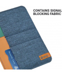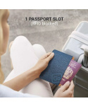velmi malá cestovní peněženka s ochranou RFID blokující přenos elektronických informací uložených na čipech kreditních karet a dokladů vyrobeno z odolného polyesteru se speciální vrstvou blokující nebezpečný signál zabraňuje ilegálnímu skenování důležitých informací vertikální provedení s uzavíráním na magnetický druk jedna hlavní přihrádka na bankovky, lístky nebo doklady, čtyři přihrádky na kreditní karty s otvorem pro snadnou identifikaci