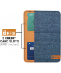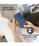 velmi malá cestovní peněženka s ochranou RFID blokující přenos elektronických informací uložených na čipech kreditních karet a dokladů vyrobeno z odolného polyesteru se speciální vrstvou blokující nebezpečný signál zabraňuje ilegálnímu skenování důležitých informací vertikální provedení s uzavíráním na magnetický druk jedna hlavní přihrádka na bankovky, lístky nebo doklady, čtyři přihrádky na kreditní karty s otvorem pro snadnou identifikaciVíce
