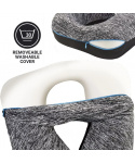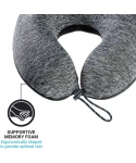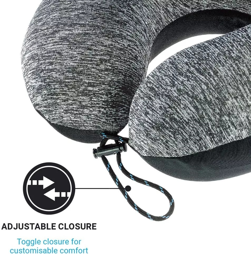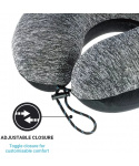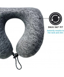 pohodlný cestovní podhlavník se dvěma rozdílnými svrchními materiály pro odlišný teplotní komfort jedna strana je vyrobena z chladivého lehkého polyesteru v kombinaci s elastanem spodní strana je vyrobena z teplého fleecu s příjemným měkkým povrchem plněno polyesterovými mikroperličkami zapínání pomocí druku umožňuje fixaci kolem krku nebo snadné upevnění podhlavníku např. kolem zavazadla určeno pro relaxaci a odpočinek při cestování letadlem, autem či vlakem určeno pouze pro ruční čištění