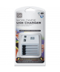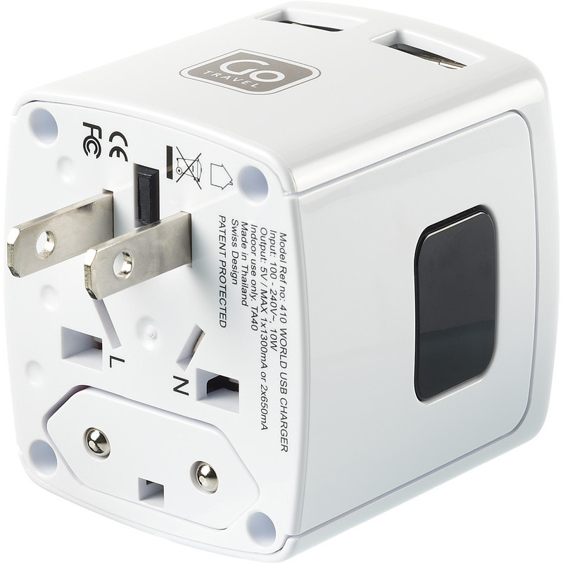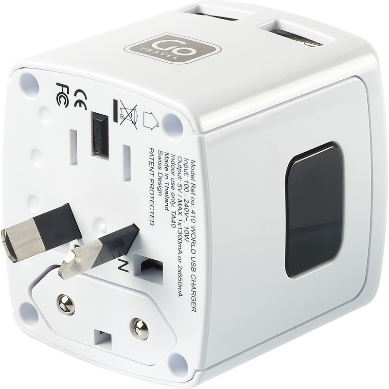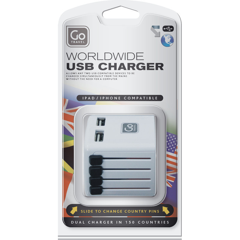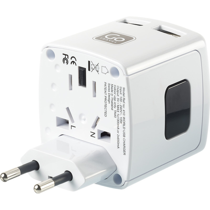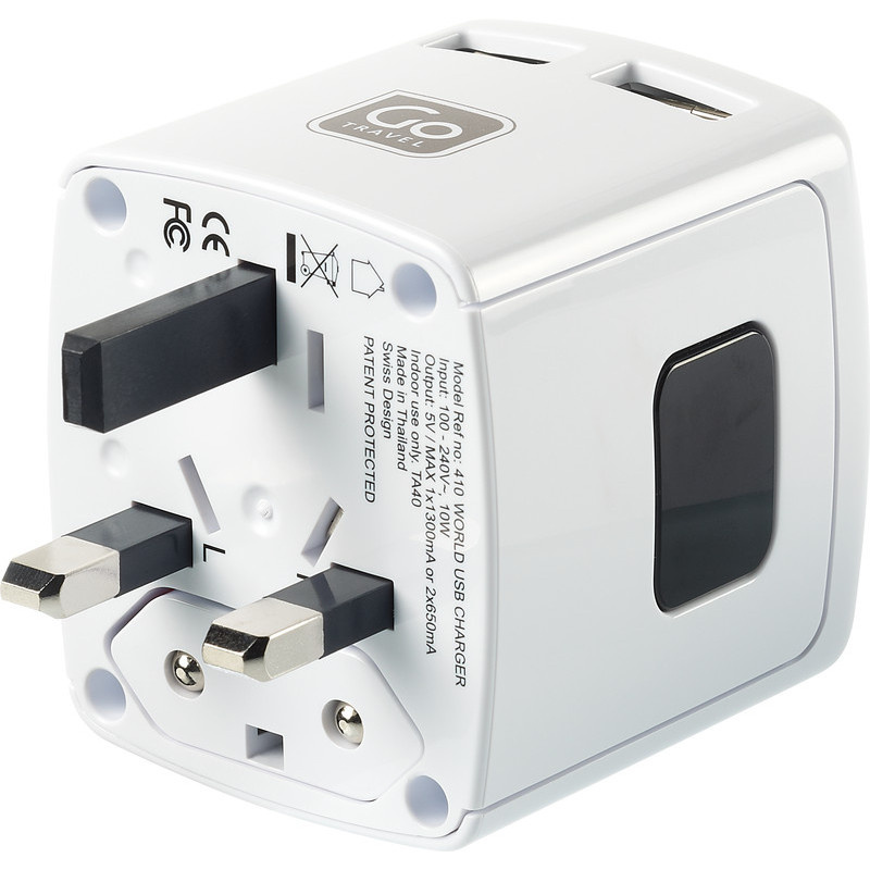 -univerzální USB nabíječka -vhodná pro cestování téměřpo celém světě -4 výsuvné pin konektory -2 USB porty -nabíjí současně dvězařízení -využití až v 150 zemích světa -voltáž 100 - 240V / 10W5V(max 13 amps kombinace)
