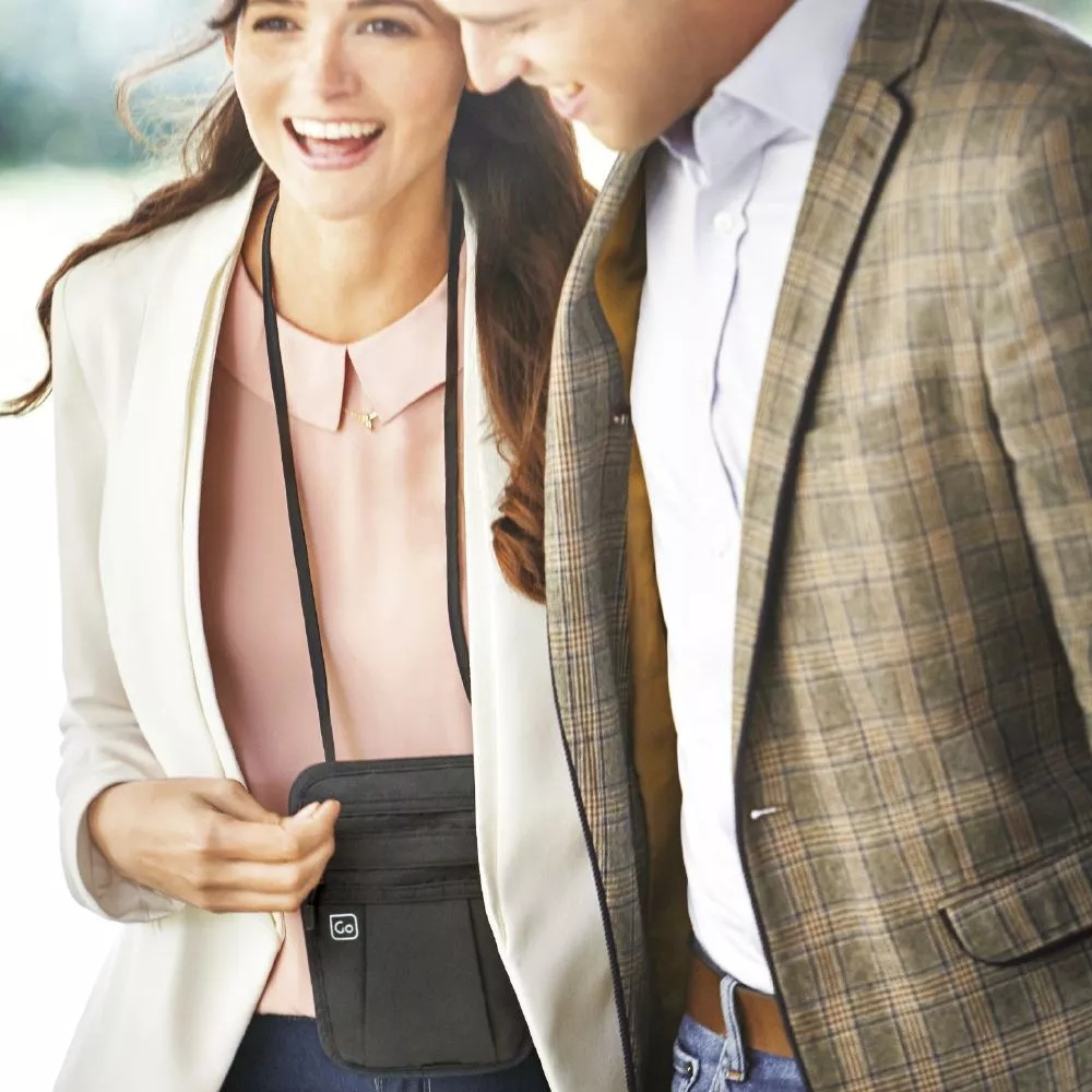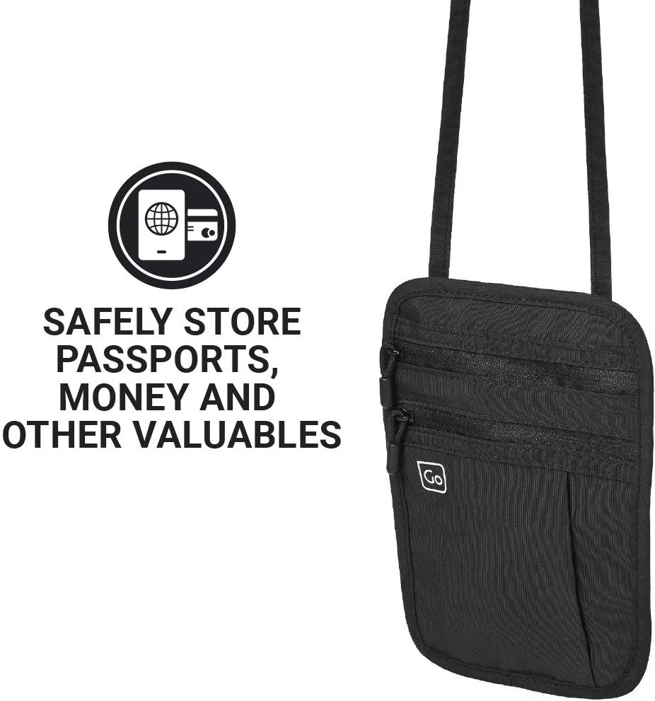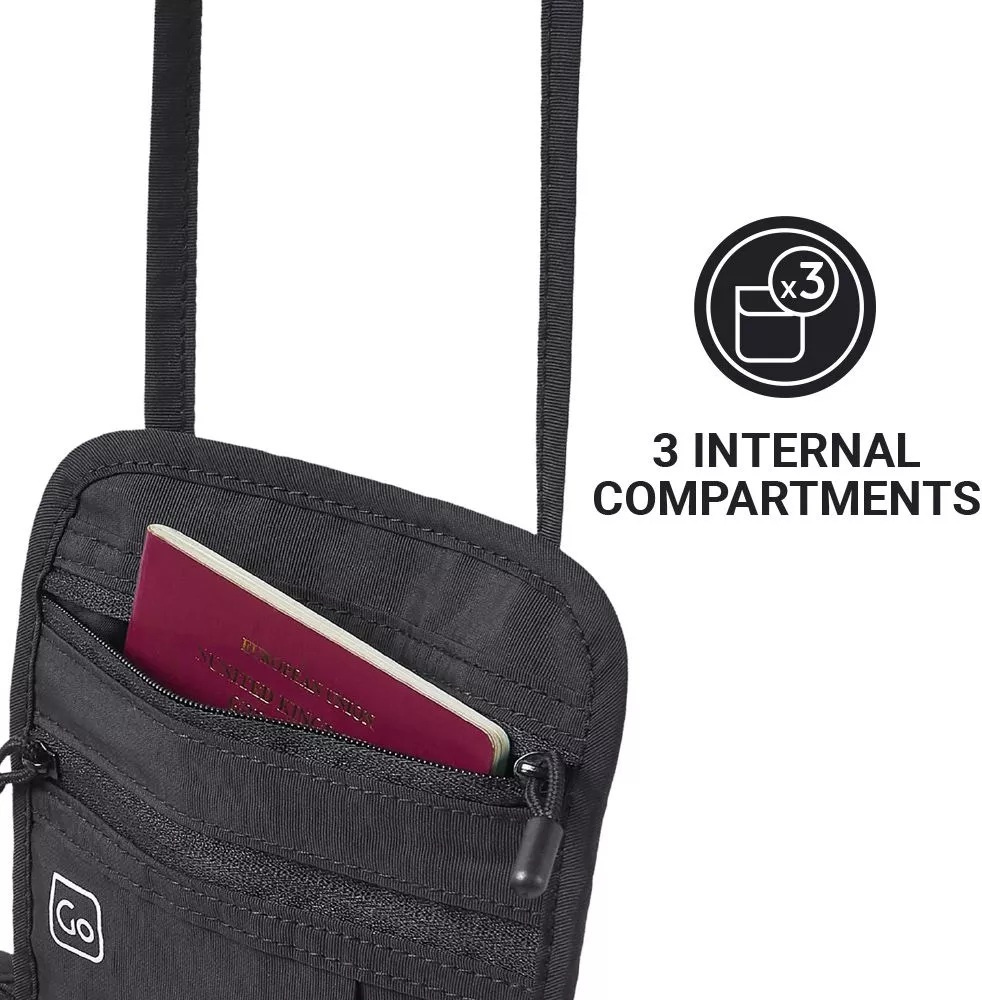 Go Travel skrytá kapsa na krk Classic Passport Pouch liquorice blackVíce